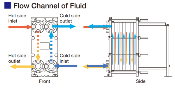 2.3.Hai môi chất được phân tán thành các lớp mỏng, chảy ngược chiều nhau, trao đổi nhiệt với nhau nhưng không tiếp xúc trong các tấm của bộ trao đổi nhiệt.