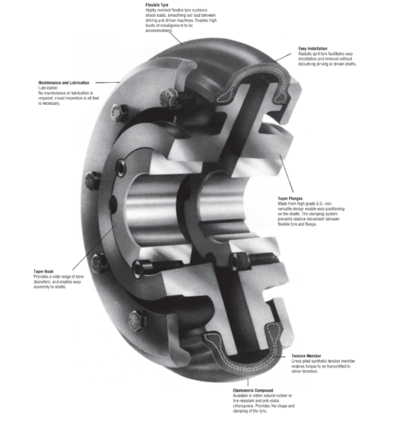 Khớp nối linh hoạt Martin Flex® truyền công suất một cách trơn tru đồng thời bù cho độ lệch trục đến 4°, độ lệch song song đến 0,125 và phao cuối đến .313. Thiết kế mặt bích hai mảnh giúp lắp đặt nhanh chóng và dễ dàng và bộ phận đàn hồi hấp thụ sốc và rung động xoắn thông qua một phạm vi nhiệt độ rộng