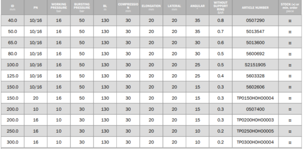Tối đa 110°C ở mức tối đa WP 10 bar (≤ DN150) / 6 bar (>DN150)