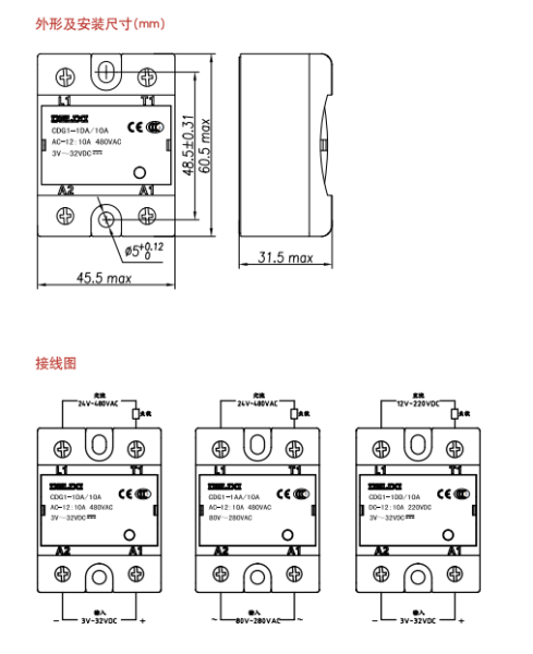 Điện áp đầu vào/điều khiển: 3~32V DC Điện áp đầu ra/tải: 24V~480V AC Công suất/Dòng điện đầu ra: 40 Amps